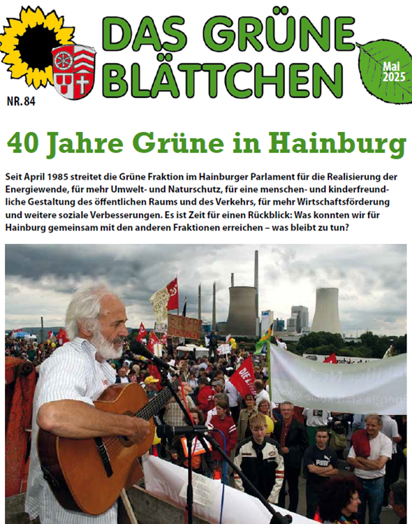 40 Jahre Grüne in Hainburg! In einer Sonderausgabe des Grünen Blättchens berichten die Hainburger Grünen über die Erfolge ihrer politischen Arbeit der letzten Jahre. Trotz allem sind noch viele Baustellen offen, die mit viel Hartnäckigkeit nach und nach durchgesetzt werden. Viel Spaß bei der Lektüre.