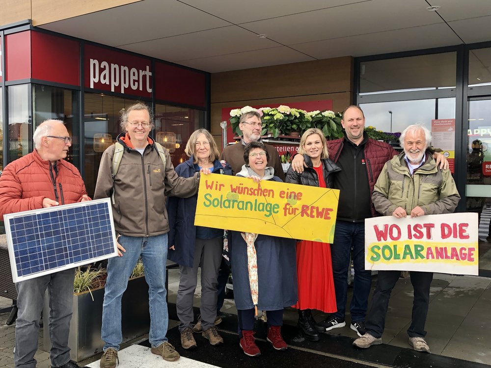 In einer Spontanaktion erinnern die Hainburger Grünen anlässlich der Eröffnung des Rewe-Marktes in Hainstadt an die Dringlichkeit, gerade bei neuen gewerblichen Bauten eine eigene Stromproduktion zu realisieren. „Alle geeigneten Dachflächen sollten künftig für die Solarenergie genutzt werden.“ mahnte Horst Winter, stv. Bauausschussvorsitzender, an.