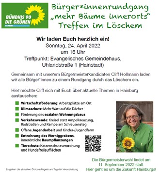 Gemeinsam mit unserem Bürgermeisterkandidaten Cliff Hollmann laden die Hainburger Günen alle Bürgerinnen und Bürger zu einem Rundgang durch das Neubaugebiet Löschem ein. Es sollen die tatsächlichen Baumpflanzungen mit dem im Bebauungsplan vorgesehenen abgegleichen werden. Mit innerörtlichen Bäumen und Grünflächen kann das lokale Klima deutlich verbessert werden. Insbesondere bei sommerlichen Hitzewellen sorgen sie durch Verdunstung und Schatten für eine deutliche Abkühlung und damit für ein besseres Klima..
